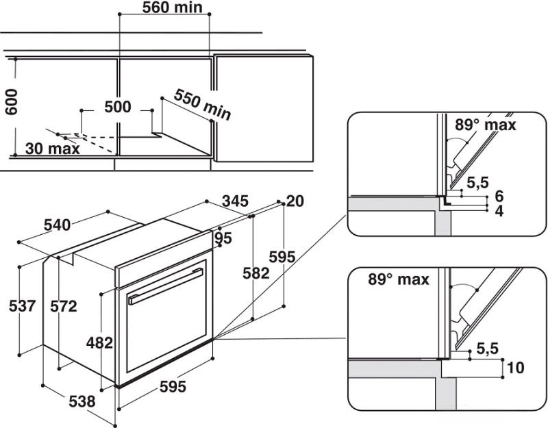 Размеры ниши для встраивания, ВхШхГ см: 60х56х55