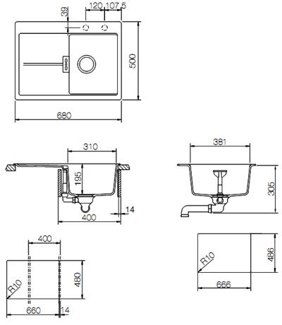 Размер мойки 680x500